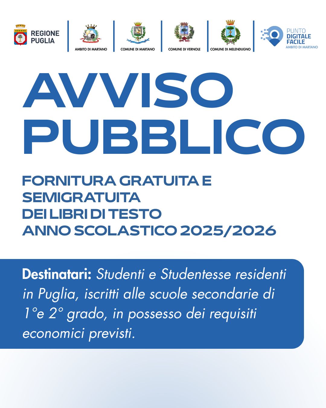 Ambito di Martano - locandine informative relative all'avviso pubblico per la fornitura gratuita e semigratuita dei libri di testo - a.s. 2025/2026 - punti di facilitazione digitale dell'Ambito di Mar...